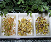 Jak widać, produkcja kiełków w domu to nic trudnego. To taka mała domowa szklarnia na parapecie. Wystarczy na początek talerz i płatek ligniny lub ten zwykły słoik, nakryty gazikiem (z apteki), do tego gumka recepturka i nasiona do kiełkowania (do kupienia w sklepach ogrodniczych, marketach, sklepach ze zdrową żywnością). No i oczywiście chęć, by spożywać naturalne witaminy, poznawać nowe smaki, a eksperymentując wzmocnić swój organizm. Myślę więc, że warto poświęcić zaledwie kilka minut dziennie, aby zapewnić sobie i rodzinie dostęp do pełnej witamin i innych składników odżywczych żywności. A na dodatek- ekologicznej żywności (jeśli kupimy niezaprawione nasiona) i to niezależnie od pory roku. Kiełkujcie więc razem ze mną!