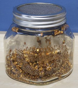 Od niedawna używam specjalnego słoika do produkcji kiełków (tzw. kiełkownicy słoikowej), który ma wygodną nakrętkę z metalowym sitowym wiekiem. Aby przepłukać nasionka, nie ma potrzeby odkręcania nakrętki. Trafił do mojej kuchni dzięki przyjaciółce Majce z Niemiec. Widzisz go na zdjęciu obok (jeśli ci się spodobał, to mam dla ciebie dobrą wiadomość – można go już zakupić w Polsce, w sprzedaży internetowej). Zastąpił mi mało estetyczny, zwykły słoik z nakrętką, w której zrobiliśmy… dziurki.